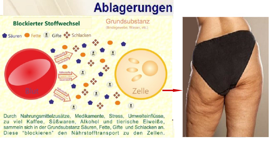 Diese Problemzonen sind nämlich im Prinzip nichts anderes als Gift- und Säure-Ansammlungen die über die Jahre hinweg angehäuft und abgekapselt und vom Körper - je nach Gentik unterschiedlich - in bestimmen Regionen deponiert wurden!